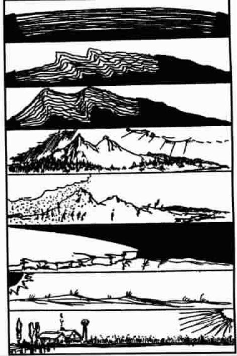 另外,关于地球的表面,又是怎么回事呢?过去,我们总是夸夸其谈,说那些岩石超越了时间而亘古不变,以至于我们把不变的事物说成“坚如磐石”。然而,现代科学却让这种说法变得并不是那么信心十足,它认为,岩石是在不断变迁的。由于风吹日晒,山峰正在以每千年减少3英寸的速度变矮,如果没有反作用力在抵消这种侵蚀作用,那些古老的山峦在很久以前就已经消失了。即使是喜马拉雅山脉也会在1.16亿年后变为平地。所以,反作用力是存在的,而且力量巨大。
