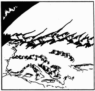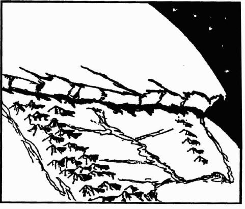 为了对地表运动有个起码的概念,请你拿出半打干净的手帕,将它们平整地摊在桌上,然后用手从两边向中间慢慢地拉动这半打手帕。你会发现,这堆手帕上出现了一大堆奇形怪状的褶皱,有的像凸起的山峰,有的像低谷,还有的层层叠叠貌似丘陵。这些手帕上的褶皱就像我们的地表。地壳是地球这个巨大物体的一部分,在太空中高速运转,它也在不断地丧失热量,随着热量的散失,就会缓慢地紧缩,由此引起褶曲变形,就像一堆手帕被挤在一起那样。