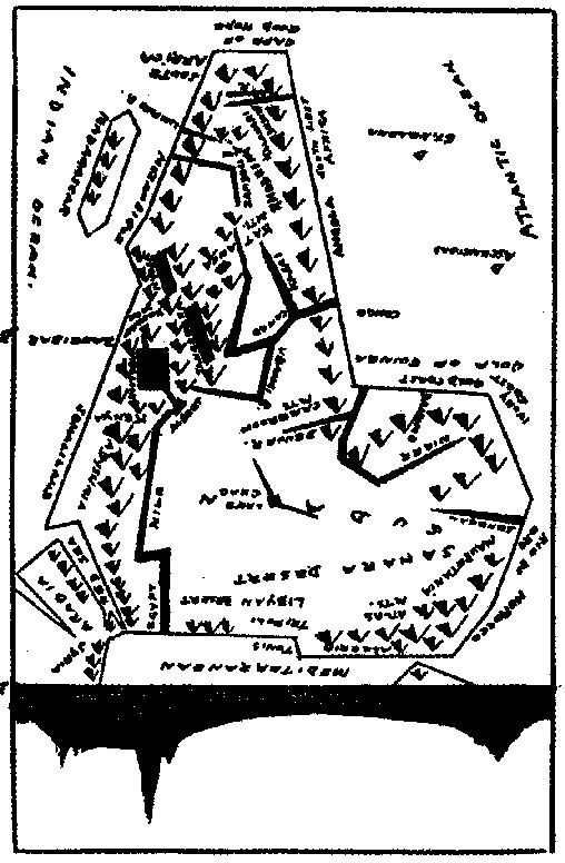 含米特人是欧洲人成功地越过地中海后见到的第一批人。至于闪米特人,需要补充的也不多。当汉尼拔将军带着驯化的大象驱入波河平原时,欧洲人就与他们进行过非常惨烈的接触。奇怪的是,一旦迦太基被消灭,通往非洲的道路就畅通了。然而,令人费解的是,很少有欧洲人想借此机会弄明白被罗马人命名为努米底亚的那片浩瀚的沙漠后面到底隐藏着什么。