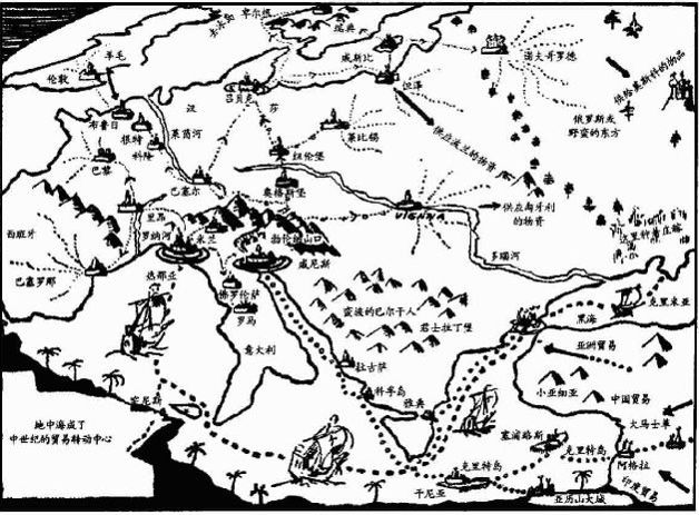 当东方与非洲的物品一旦运达这些意大利集散中心,它们还必须被转运到欧洲西部和北部的国家去。