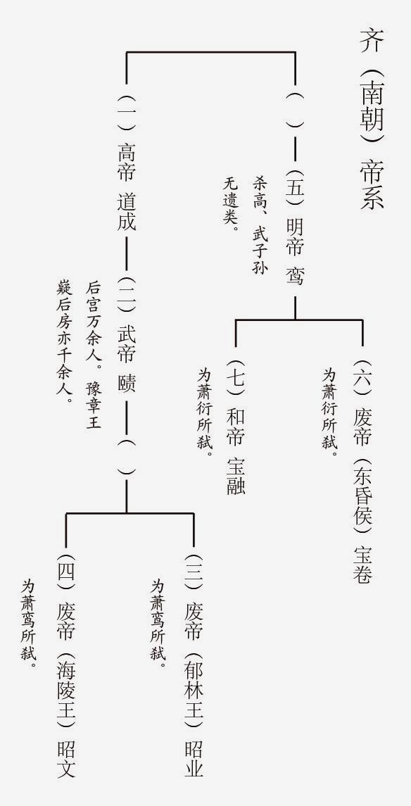 齐七帝,二十四年。【人物历运,于南朝为最下。】