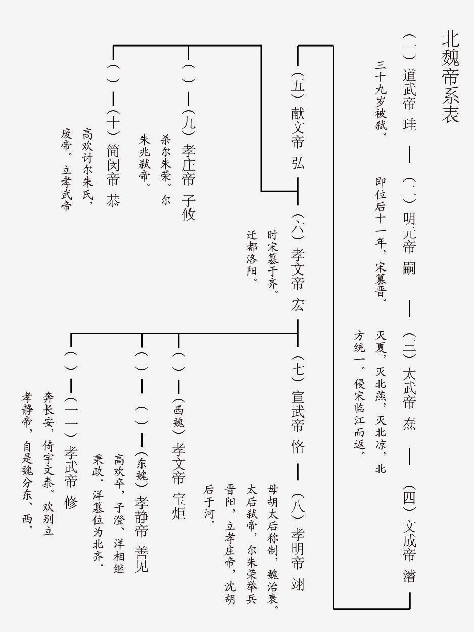 元魏自道武帝至孝武帝入关,凡十一主,一百四十九年,分为东、西。