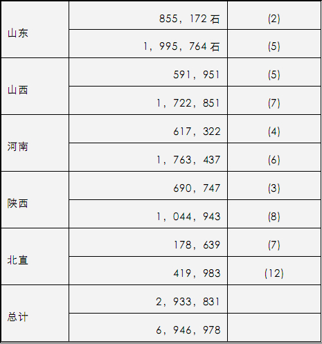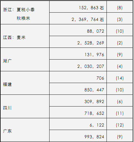 按:苏州一府秋粮2,038,894石,超过湖广以下任何诸省,而与浙江、江西二省相仿佛。松江、常州秋粮合1,546,180石,亦超过陕西、广东、福建、四川、北直、广西、云南、贵州诸省,而与山西、河南两省相仿佛。若苏、松、常三府秋粮合计,则超过江西、浙江以下任何诸省矣。