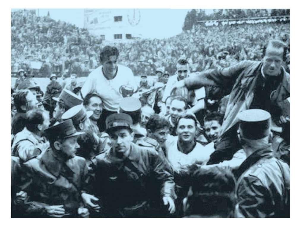 1954年的男足世界杯决赛,当时堪称“梦之队”的匈牙利队在上半场开场8分钟就攻进联邦德国队两球。然而,上半场0比2落后的联邦德国队下半场判若两队,最终3比2逆转匈牙利队,获得世界冠军。这场比赛被称为“伯尔尼奇迹”。
