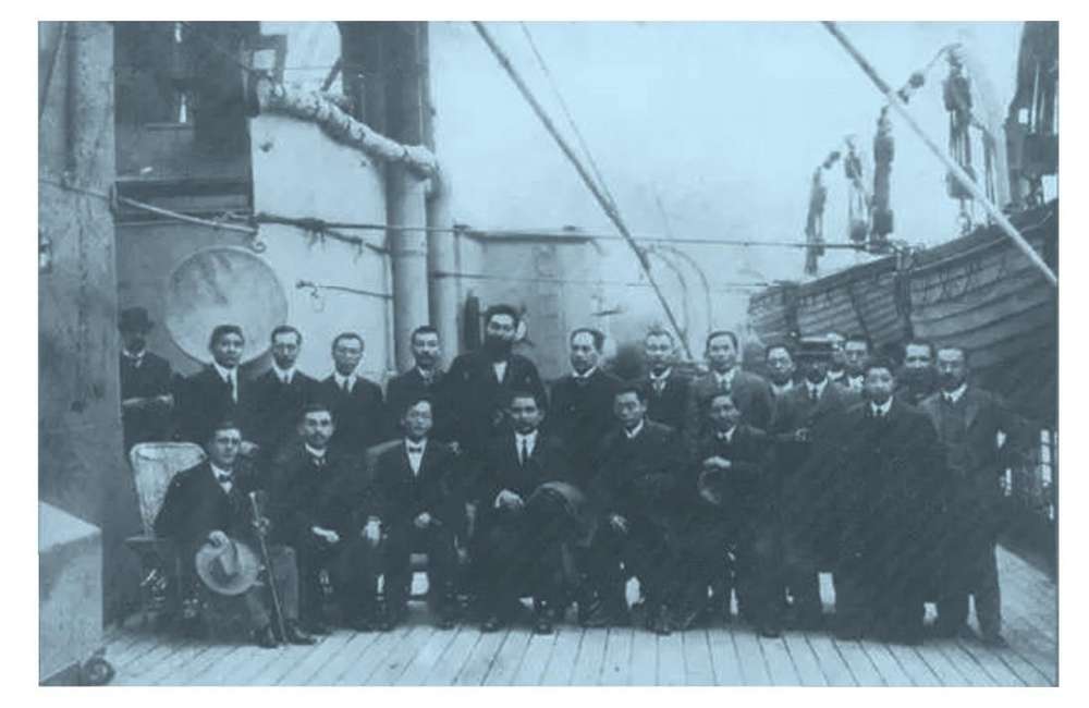 1911年12月21日,孙中山与欢迎者在船上合影