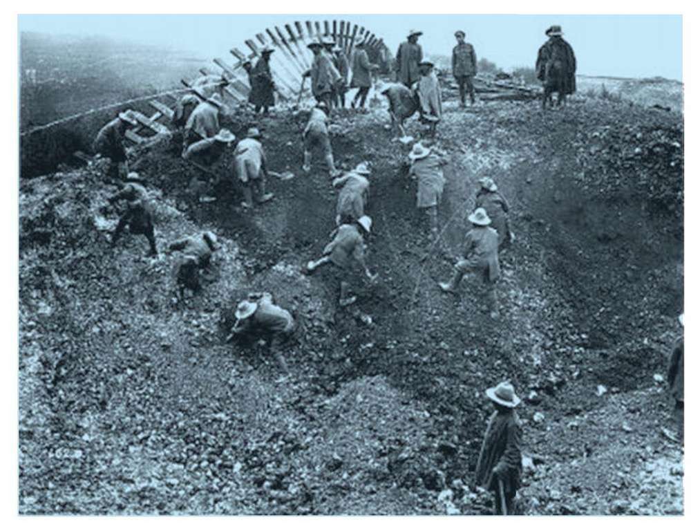 在1917年法国皮卡第的一场战斗中,德军突破了防线,直接冲入了英法联军的阵地,正在挖战壕来不及撤退的华工们,只能用铁锹、镐头与德军展开肉搏。当英法援军赶到时,大部分华工已经战死。