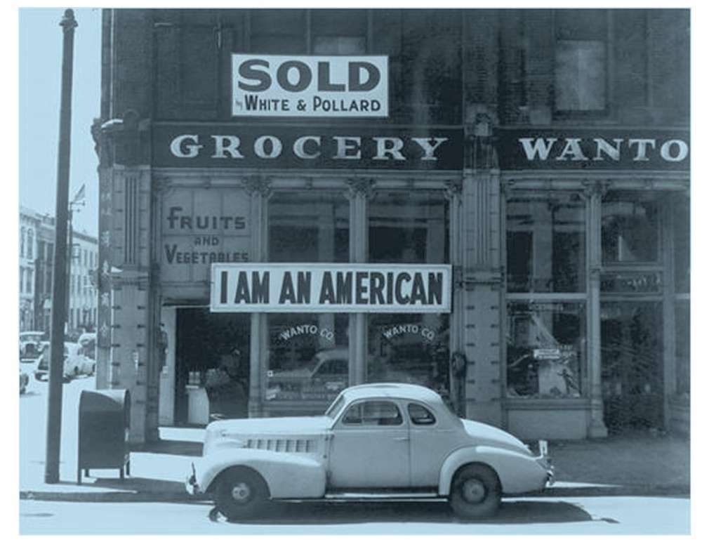 这个杂货店的日裔美国人老板在“珍珠港事件”的第二天就贴出了这个标语:我是美国人。但之后他也被抓走关押了