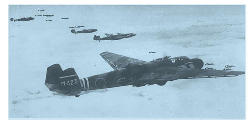 日本的鹿屋航空队18架“九六式”轰炸机,每架携带着2枚250公斤的炸弹,从台北的日本空军基地起飞,飞向中国大陆。