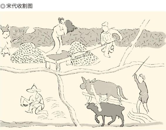 敦煌61窟壁画中的宋代收割场景。据沈从文《中国古代服饰研究》。