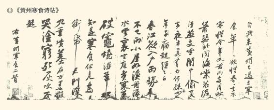 墨迹素笺本,横34.2厘米,纵18.9厘米,行书17行,129字,现藏台北故宫博物院,是苏轼在被贬黄州的第三年寒食节时作,在书法史上影响很大,被称为“天下第三行书”。