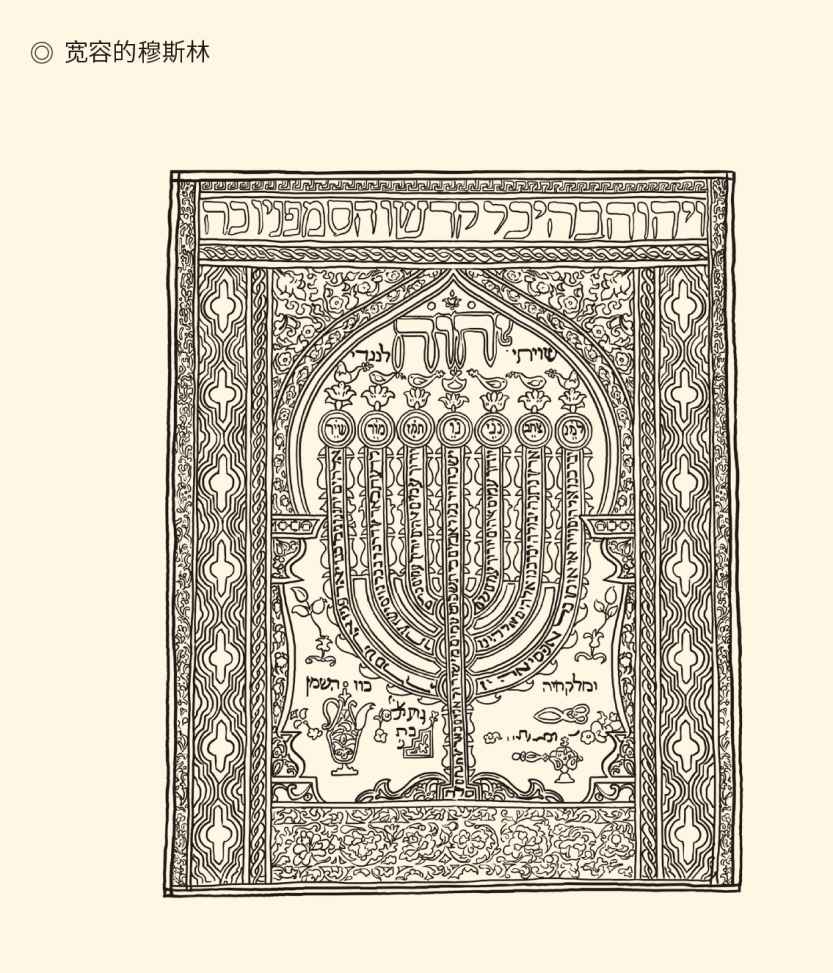 图为来自摩洛哥的犹太教诗文板,其作用是提醒信徒们神的存在,通常被挂在犹太会堂东墙。在伊斯兰帝国,尽管会受到一些限制,犹太人和基督徒仍然可以继续信奉自己的一神教,并被称为“有经人”。