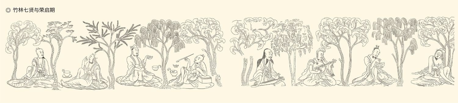 跟年轻时的谢安一样,嵇康很不愿意做官。只不过谢安终于东山再起,嵇康却当真归隐山林。与之神交的,是阮籍、山涛、向秀、刘伶、阮咸、王戎。据说,他们七个人曾作“竹林之游”,世人称之为“竹林七贤”。[20]