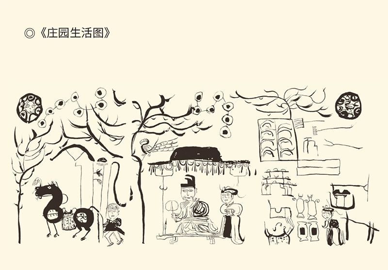 东晋纸本,纵长100厘米,1964年新疆吐鲁番阿斯塔那东晋墓出土,现藏于新疆维吾尔自治区博物馆。描绘墓主人坐于垂幔下,头戴高冠,身穿袍服,手执团扇纳凉。夫人头束环髻,脸上涂胭脂,侍立于后。