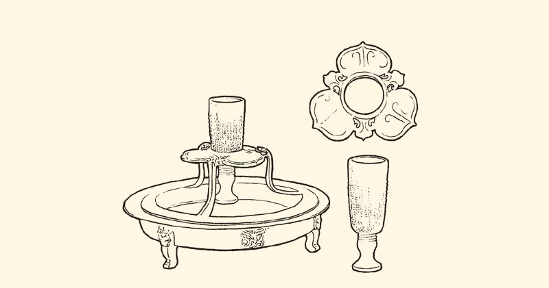 铜承露盘和玉高足杯,广州西汉南越王墓出土。