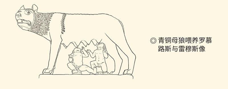 更靠不住的是,罗慕路斯和他的双胞胎兄弟被说成是战神马尔斯的儿子。他们哥俩被叔外祖父抛弃后,一只母狼喂活了他们,后来又被牧羊人夫妇抚养成人。因此,这只警惕而机敏的母狼,便成了罗马城的标志。