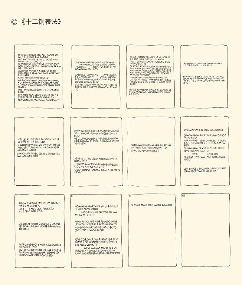 这当然其来有自,甚至可以追溯到西亚文明,但公元前494年的平民撤离运动也功不可没。因为正是在这场运动之后,罗马迫于平民的压力开始了成文法的制定。首部法典刻在了铜板上,因此得名《十二铜表法》。[3]