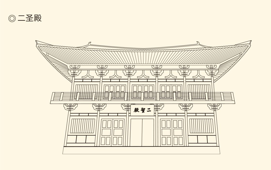 位于武则天出生地四川广元的皇泽寺建有二圣殿,中有武则天和唐高宗李治的双人塑像。这也是留存至今仅有的以“二圣”为主题的古迹。绘图据建筑照片。