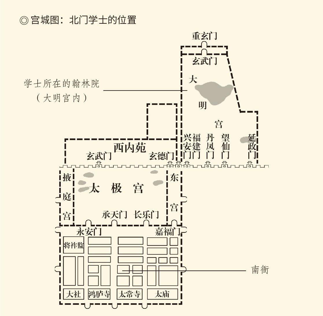 北门是皇宫的后门,依法只有皇帝、后妃、太子和王公才可以出入。武后却奏请高宗批准,特许这些撰稿人从北门进宫。看看地图就知道,皇后的目的很明确,就是要绕过宰相和百官办公的南衙。因此,这些人的任务绝不仅仅只是编写《列女传》之类的玩意,他们还有参决政事权。