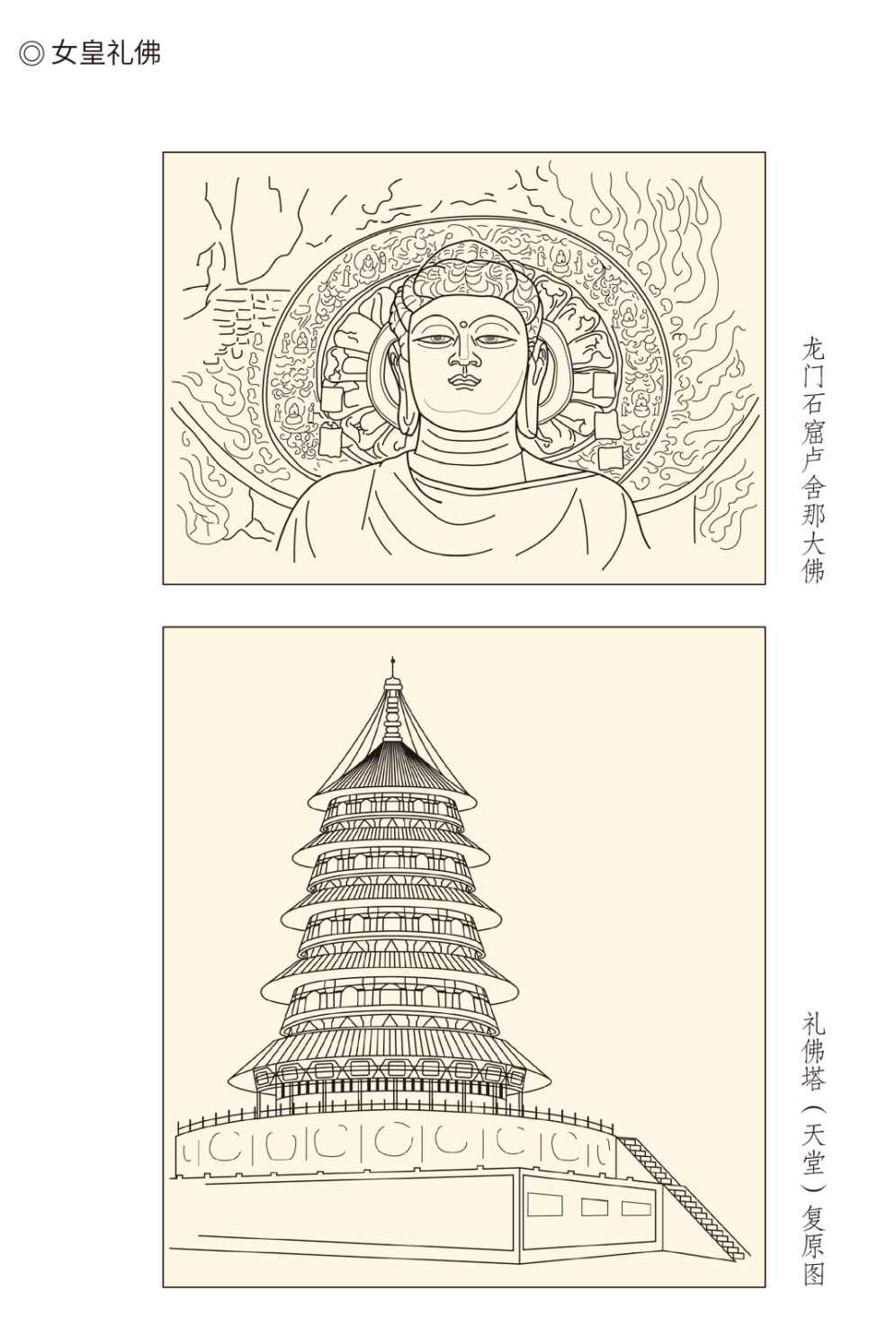 女皇扶持佛教,一时朝野释法鼎盛。武则天下令在神都洛阳修建了与明堂相邻的礼佛塔,命名为“天堂”,并以供养人的身份资助龙门石窟的开凿。有说法称龙门最著名的卢舍那大佛即是以武则天面相为原型而制。