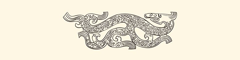 春秋玉龙曲身回首龙形,以角、鳍等装饰。龙身两面纹饰相同,器边起沿,器体布凸起谷纹,应为祭祀礼玉,现藏于侯马晋国古都博物馆。