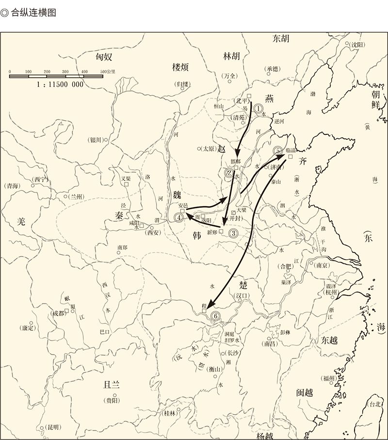 图据《中国历代战争史地图集》苏秦合纵游说六国顺序:燕赵韩魏齐楚。