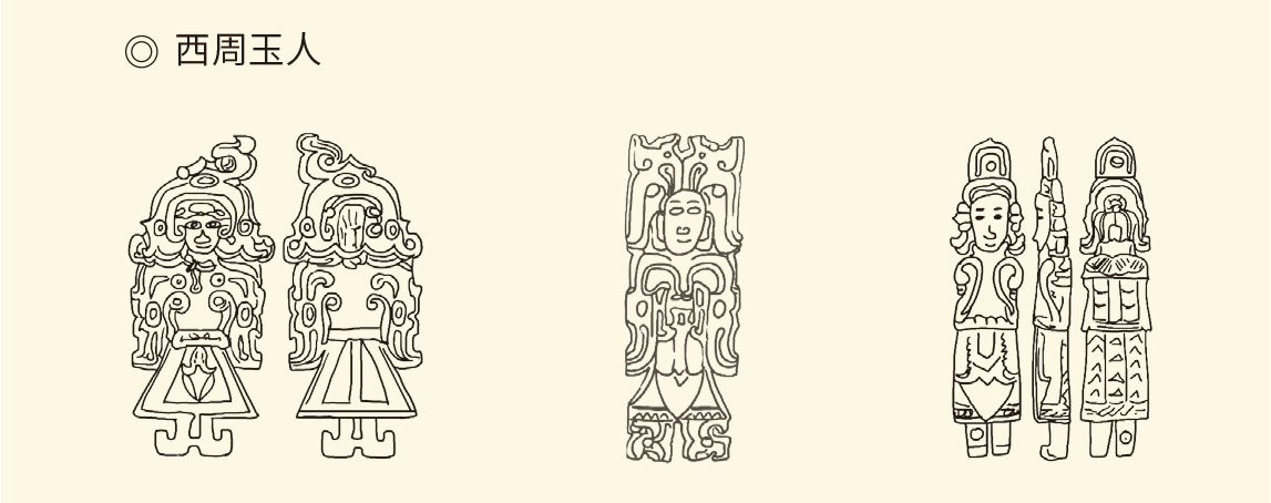 这一组玉人分别头戴云朵形高冠、对称的双龙形高冠和牌形高冠。据《早期中国文明:周原文化与西周文明》。