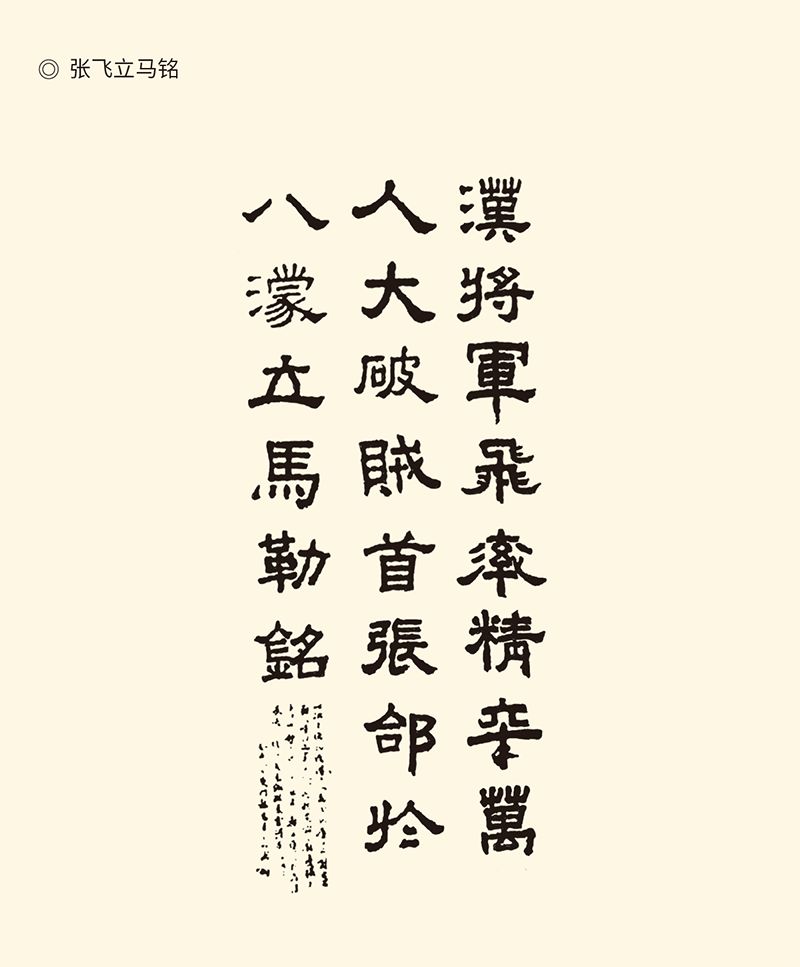 张飞字益德(《三国演义》作翼德),涿郡人,官至车骑将军,封西乡侯。图据清代拓本“汉将军飞率精卒万人大破贼首张郃于八立马勒铭”,又名“八摩崖”,据说张飞在汉中争夺战中大败魏将张郃,刻此铭于石壁。