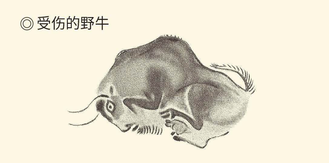 这幅洞窑壁画发现于西班牙阿尔塔米拉山洞,该洞穴壁画绘有野牛、猛犸等多种动物。其中最著名的是这件长达两米的《受伤的野牛》,刻画了野牛受伤之后,挣扎求生的情景。图为现代仿作。