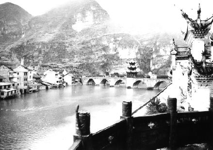 从城垣上走下来的时候,我又一次经过四宫殿,我在那里停了好长时间,用望远镜往峡谷对面的一个山洞张望,洞口被一些破碎的红布条遮住了一部分。古代的时候,那里是一位道人的住处,没有人记得他叫什么名字,现在,那里住着一位衣衫褴褛的男人和他衣衫褴褛的老婆以及同样衣衫褴褛的孩子。我在想到底是什么原因让他们住在那个洞里。天太冷了,我想不了那么多,沿着小路继续往下走,来到那条横贯整个城镇的路上,跟在几头猪的后面,到了汽车站。我买了前往施秉的车票。施秉位于镇远以西46公里。车还有一个小时才开,我有足够的时间回旅馆拿行李。我很快就返回了车站,还有30分钟的富余。天冷才让我的行动如此迅速。我后悔没有在旅馆大堂的炉子边多待一会儿。车站内的温度比外面还要低,但是站长可怜我,邀请我进他的调度室,司机们正围坐在一个木炭炉子边。我加入了烤火的人群。两天以来,这是我第一次能感觉到自己的脚指头。