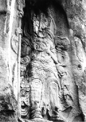 我花了好几分钟跟她解释,才使她相信我不是来带她去阴间的。她以前从未见过外国人,像我这样留这么长胡子的人见得更少。她说:“那么,你不是地狱来的,你是哪儿来的?”我问她有没有听说过洛杉矶,这也不起什么作用,她根本没听说过洛杉矶。说服她费了不少劲,但当她终于明白我不是来取她的灵魂时,她笑起来,边笑边告诉我沿着山岭走到下面的河谷就是。我按她指的路走到谷底,发现了我平生见过的最震撼人心的石刻佛像。