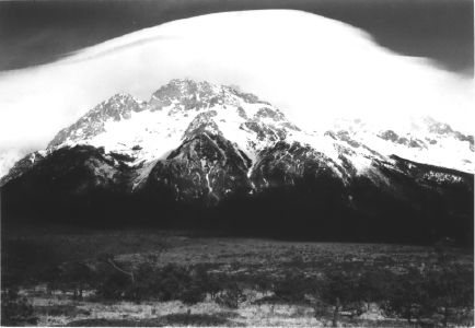 我们回到车上,继续前进。过了23公里的界碑,我们又停下了。这次,司机领我们登上一个树木丛生的土墩,眼前是一片壮丽的景色,整个玉龙雪山东侧白雪皑皑的山峰尽收眼底。山脊下面是环绕5500米顶峰的冰川。我们真想在那里待上一天,就那么静静地欣赏美景。可是司机说该回车上了,我们便老老实实地回到车上。