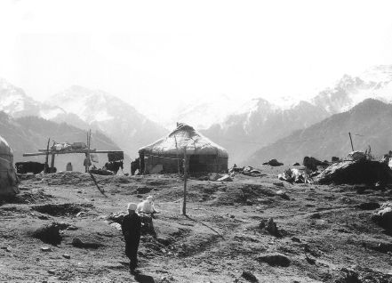 虽然与常见的住房有相当大的不同,但毡房就是个住的地方。毡房是用毛毡搭在格子框架上建成的圆顶帐篷。向导为我们掀起门帘,进入房内,我们把行李和酒放在地毯上。虽说此处距乌鲁木齐只有不到3个小时的车程,但这里简直是另外一个世界,一个与天穹亲密接触的世界。