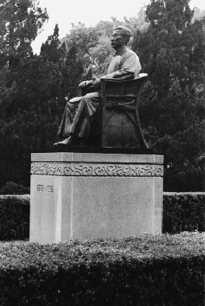 鲁迅是中国二十世纪最伟大的作家。他在上海度过了生命中的最后十年,于1936年去世,终年五十五岁。墓前铸有一尊他坐在藤椅上的铜像,线条简练朴拙,堪称杰作。我从小贩手里买了些鲜花,放在一个日本参访团敬献的花圈旁边。鲁迅曾在日本留学多年,后来他重新回到中国,开始了他的文学创作。尽管鲁迅有社会主义倾向,但在日本,无论过去还是现在,他一直被视为英雄。虹口公园里还有一座鲁迅纪念馆,展出他的各种遗物,搜罗完备,巨细悉陈:怀表、伞、他的书和期刊,还有一套他早年刻制的木版画,比文字更生动地反映出了他对同胞苦难的同情,令我想起了版画家珂勒惠支的作品。