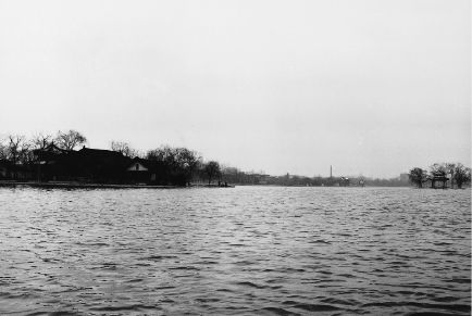 靠近大明湖,我惊诧于它的大和荒寒。转念又想,这么冷的天,天空还飘着雪花,谁会来游湖呢?公园里只有一个出租小船的生意人。既然来了,我决定也坐坐船,到湖上转悠一圈。我把船划到一个湖心小岛,走进了岛上那座孤单地立在冰天雪地中的亭子,这亭子叫历下亭。公元745年,诗人杜甫和书法家李邕在这里夜宴而醉,这个亭子也因为这件事而变得不朽了。亭子里有碑文,记载着那天晚上诗人写下的诗歌,可是碑文太模糊,已经无法辨认了。就在我看这石碑的时候,岛上的寒气让我的脚再一次被冻僵,几乎失去了知觉,真是“关键时刻掉链子”,我必须要离开这里了。