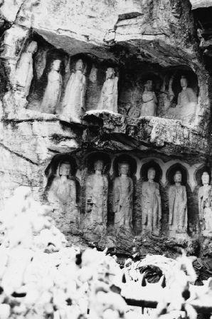 经过一晚的休整,我决定去千佛山看看。千佛山是济南南部的一道屏障,早在六百年前,佛教信徒就开始在它的悬崖上雕凿佛像。佛像的数量曾一度达到一千尊以上,后来数量锐减,大多数都迁转到其他佛国去了。现在还有佛像约六十尊,它们是战争和政治运动的劫后遗珍。我让出租车司机将车停在一条上山小道旁,然后开始步行。当我经过一尊又一尊佛像时,忽然心生困惑,究竟是什么人出资雕凿了这些佛像?他为什么要选择济南这个地方呢?说实话,这些佛像雕凿得并不太精细,但是雪为它们增添了一些静穆和庄严。这种静穆和庄严,是雕凿技艺本身没有传递出来的。