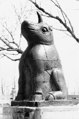 我拍了拍铁“犀牛”的腿,蹬车前往该市的另一个标志性建筑——开封铁塔。这座塔其实并不是铁的,只是塔身通体以琉璃砖贴饰,看起来像铁的一样,因此人们都管它叫铁塔。走近仔细观察,我发现那些看似光滑的琉璃砖的表面,实际上隐藏着各种佛像、传说和天堂景象的花纹图案。看塔人告诉我,图案有五十种之多,多为佛教人物和故事。要把五十种图案看全了,非得有望远镜不可,可那天我忘带了。这座塔是中国最高的琉璃塔建筑,高五十六米,共十三层,建于北宋。建塔的目的是奉祀一件佛顶骨舍利,现在,这件舍利早已转到上海南郊的一座寺庙里了。