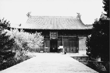 永乐宫不仅道教神仙壁画有名,它的建筑也有名。它是整个中国道观建筑最古老的实例。建筑学界对它很熟悉。它的大殿屋顶的曲线既高古宏伟又简约流畅,屋脊上镶着黄、绿、蓝三色琉璃。向上微翘的飞檐,两只高达三米多的大鸱吻仰望天空,整体像一条腾空飞升的巨龙。看完壁画和建筑,我意犹未尽,又走进一间偏殿。那里展出一些照片和其他资料,记录了二十世纪六十年代壁画和建筑的切分、搬运、复原的全过程。整个工程耗时七年,终于避免了因水位上涨而给这些重要文物带来的灭顶之灾。今天,这座重修的道观看起来跟原来的一模一样,完美无缺。