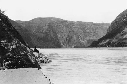 这座黄河大桥所在的地方叫龙门,正是那位农民赠我的拓片所描绘之地。从公路上下来,沿着岸堤走近黄河,现在我已经到了陕西省的顶边儿上了。黄河对岸就是山西省。我听不出中国人说这两个省份时发音的区别,更不用说我自己发音了。但是黄河一定知道它们的区别。黄河自北奔腾到此,山西省在它的左侧,是太阳升起的东方;陕西省在它的右侧,是太阳落下的西方。那条“黄色巨龙”将广袤的黄土地一劈两半,一边一省。这一“劈”劈出来一道峡谷,两岸峭壁间的跨度不足四百米,因此称做“龙门”。