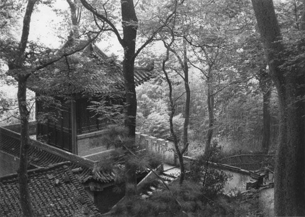 下来回到主院里,我们要了面条。我开始浏览在正门那儿得到的游客手册。1982年,楼观台附近的土地,大约有六百四十公顷,被置于省政府森林管理局的管辖之下,种满了竹子、黑槐、胡桃和松树。楼观台位于西安城外七十公里处,乘车大约要三个小时,对于大多数旅游者来说,它离西安有点儿太远了。很显然,政府正在把它变成一个森林研究中心。