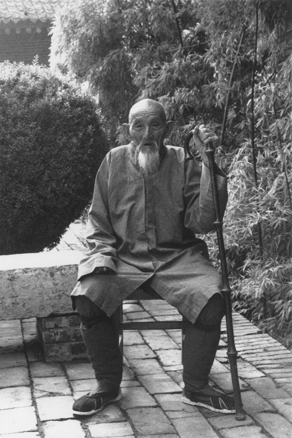 常明让我在大殿外等一会儿。几分钟后,他带着一位老和尚回来了。他介绍说,这位老和尚是光善。他说,光善在嘉五台后山的一个茅篷里住了四十多年。他的茅篷在19世纪末虚云住过的那个茅篷的上面不远。光善九十八岁了,是前年下山的,那时候,他已经不能再种地了。我问光善,嘉五台上是否还住着其他的隐士。我几乎听不见他的回答,因此常明不得不重复一遍他所说的话。光善回答说,是有几个,但是不像以前那么多了。