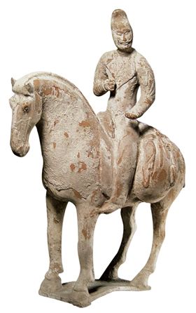 红陶骑马狩猎俑 唐