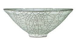 宋代汝窑也追求裂纹的表现,但纹理与哥窑不同,重视脉络。前人谈汝窑的特点时说:“青如天,面如玉,蝉翼纹,晨星稀。”前两句说的是色彩和品相特点,后二句说的就是开片特征。“蝉翼纹”,是说它的开片很薄,如蝉的翅膀,或隐或现。晨星稀,是说汝瓷以玛瑙入釉,釉面的裂痕有不同角度的斜开片,稀稀落落,寥若晨星,对着光照,产生不同的反射效果,极有意味。