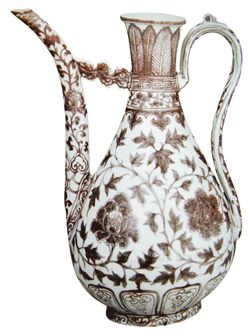 元代景德镇始创的釉里红瓷器,就是“藏”的代表。釉里红与青花是元代景德镇创造的两大瓷器品种,釉里红烧制难度大,没有青花那样流行。但釉里红有很高的品位,这种瓷器在明代洪武年间得到进一步发展,今天收藏界对洪武釉里红的痴迷,也说明它的价值。