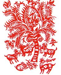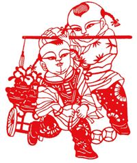 剪纸是中国民间一门有着近千年历史的独特艺术。它要求的材料很简单,只要有纸张和一把剪刀(或刻刀)就可以了。熟练的剪纸艺人剪纸的过程如同变魔术,他将一张红纸在手上左叠右叠,然后用剪刀轻轻地剪几下,摊开一看,就是一幅漂亮的图画。有的艺人根本不需要眼睛看,能在袖子里剪出漂亮的图案来。剪纸是一种即兴式的艺术,剪纸艺人无须画稿,就靠手中的一把剪刀,刀起图出,每一次剪出的都有不同,所以它的表现力很强。剪纸艺术在农村地区尤为流行。
