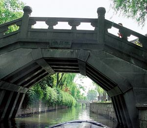 西塘在太湖之畔,又有运河擦肩而过,古镇中有九条蜿蜒的河道,将全镇分成八块。人家临水而居,商号一般也靠水搭建。西塘人世世代代凭着一叶小舟,在街市中穿梭往来。河道两边弱柳扶风,又有繁花异朵点缀,河中浮荇点点,水鸟嬉戏,白鹅漂水,一片生机。有河就有桥,西塘有数百座古桥,形态各异,著名的桥梁有五福桥、卧龙桥、环秀桥、送子来凤桥等。桥多呈拱形,弯曲的桥面就像半个月亮落在水中。人从桥上经过,如在天上的街市。