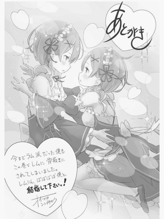 然后是设计的草野老师,这次也麻利地决定了十分感谢。不仅仅停留于这次的封面插图,在RE零相关的事物上都帮了大忙,感谢惶恐至极。今后也拜托了。