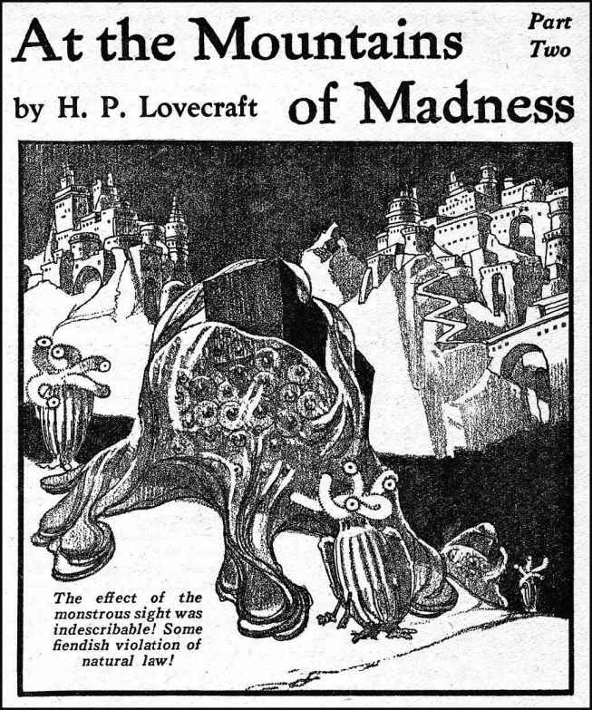 这篇引人入胜的故事是洛夫克拉夫特生平创作中最好的作品之一。故事发生在南极大陆,洛夫克拉夫特从小就痴迷于此,曾对南极考察活动发表过专题文章。洛夫克拉夫特还于1928年至1930年期间跟随海军探险队进入过南极。小说中频繁提及尼古拉斯·罗瑞克喜马拉雅群山的绘画,可见洛夫克拉夫特在纽约尼古拉斯·罗瑞克博物馆观看罗瑞克画作时,受到很大的震撼和启发。当《诡丽幻谭》杂志拒绝刊载此文时,洛夫克拉夫特很受打击。直到1936年洛夫克拉夫特的经纪人将此故事寄给《惊骇科幻小说》(Astounding Stories )杂志后,这部小说才得以在当年的二、三、四月刊上连载。