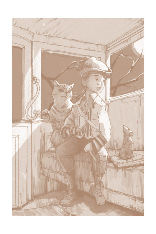 莫里斯爬出马褡裢,伸了个懒腰。一脸傻相的男孩把老鼠们从另一个褡裢里放了出来,一路上他们都挤在钱上。他们不好意思说,但那是因为没有人想跟一只猫睡在同一个袋子里。