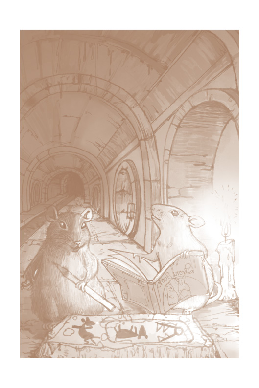 把思想写下来这一举动导致了他们与火腿的争执。新想法要进入老老鼠的头脑需要飞跃。毒豆子用他出奇平静的声音解释说,把事情记录下来意味着,就算一只老鼠死了,他的知识也能流传下去。他说这样做,所有的老鼠就都可以学到火腿的知识。可火腿说:“不可能!我花了多少年才学会了自己掌握的窍门!我为什么都要给出去?那样的话,任何一只小老鼠就都跟我知道得一样多了!”