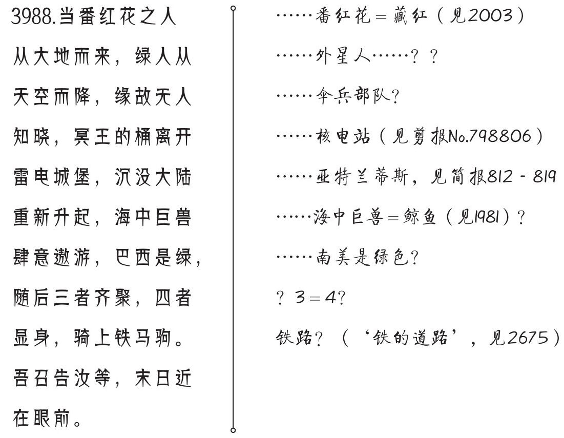 “不过,我觉得艾格尼丝也有点力有未逮了。关于海中巨兽、南美和三三四四的部分,可以有无数种解释。”她叹了口气,“问题在于报纸。你永远不知道艾格尼丝提到的东西是不是你漏看了的芝麻小事。你知道每天早晨浏览所有日报需要多长时间吗?”